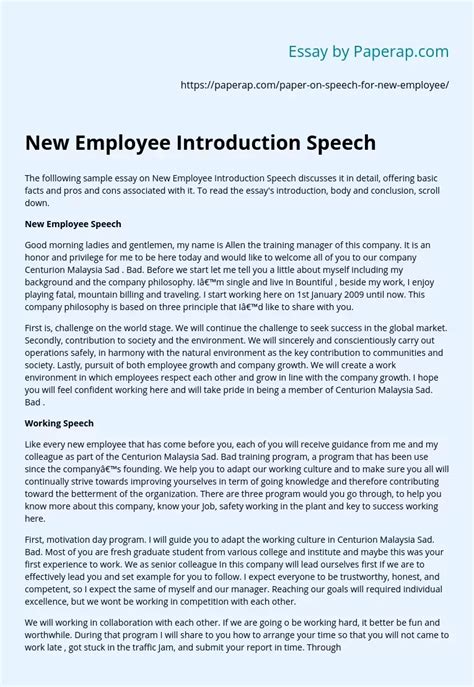 Free Download new employee self introduction speech sample ManyBooks PDF